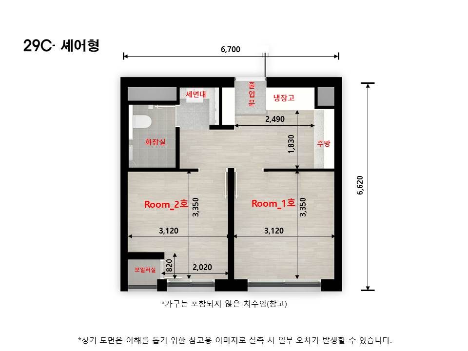 ※ 29㎡B, C형의 경우 거실에 스텐드형 에어컨을 설치 할 수 있게 동관 및 전원선이 시공되며, 안방에 벽걸이형 에어컨을 설치 할 수 있게 동관 및 전원선이 시공됩니다.