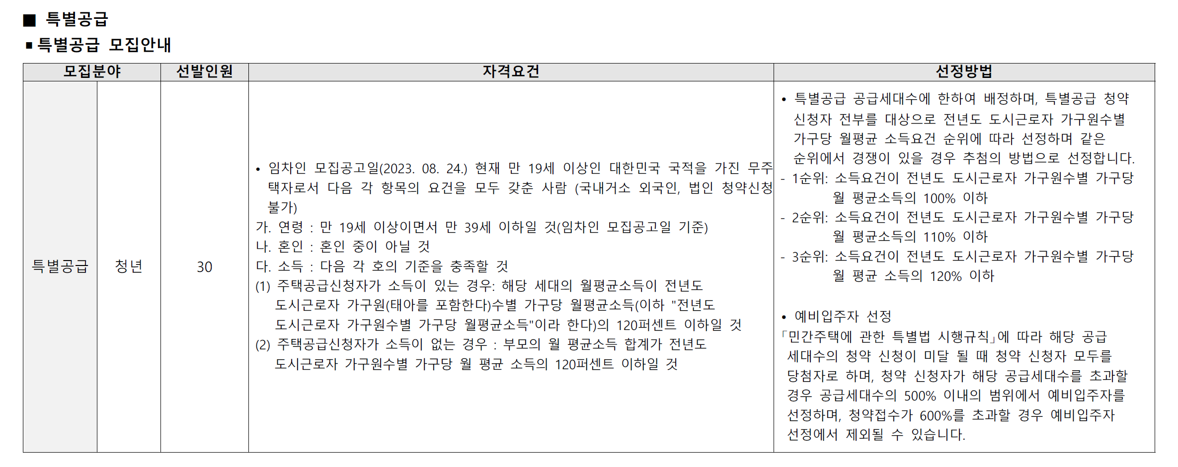 청년 특별공급은 한 개 세대를 한 분이 온전히 사용하는 것이고