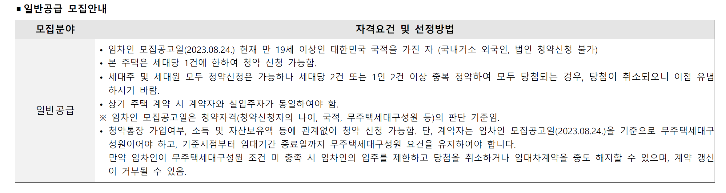 ※ 후속임차의 경우 표준형, 선택형Ⅰ , 선택형Ⅱ 중 기존 퇴거자가 선택한 유형 그대로 계약하여야 하오니 참고 부탁드립니다.